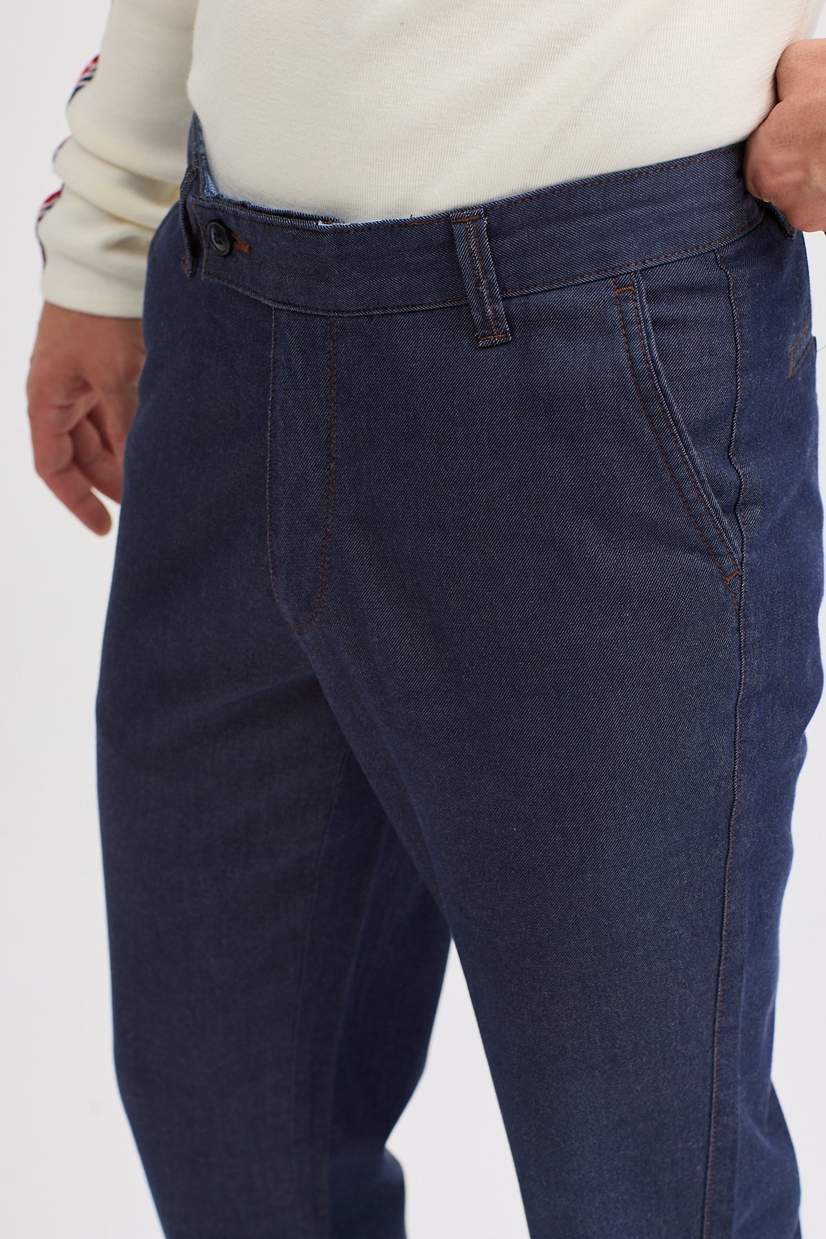 260g gramaja ve 20 mikron inceliğe sahip bu özel denim dokuma kumaş, %60 pamuk, %32 Merinos yünü, %6 polyamid ve %2 elastan içeriğiyle dayanıklılığı ve konforu bir arada sunar. Pamuk ve Merinos yünü karışımı sayesinde yumuşak bir dokuya sahip olan kumaş, nefes alabilir yapısı sayesinde gün boyu terletmeden konfor sağlar. Merinos yününün doğal ısı dengeleme özelliği ile dört mevsim kullanıma uygundur. Polyamid ve elastan katkısı, uzun ömürlü kullanım ve esneklik kazandırarak hareket özgürlüğünü artırır. Günlük kullanım için tasarlanan bu denim kumaş, hem sağlam yapısı hem de doğal hissiyle zamansız bir konfor sunar.